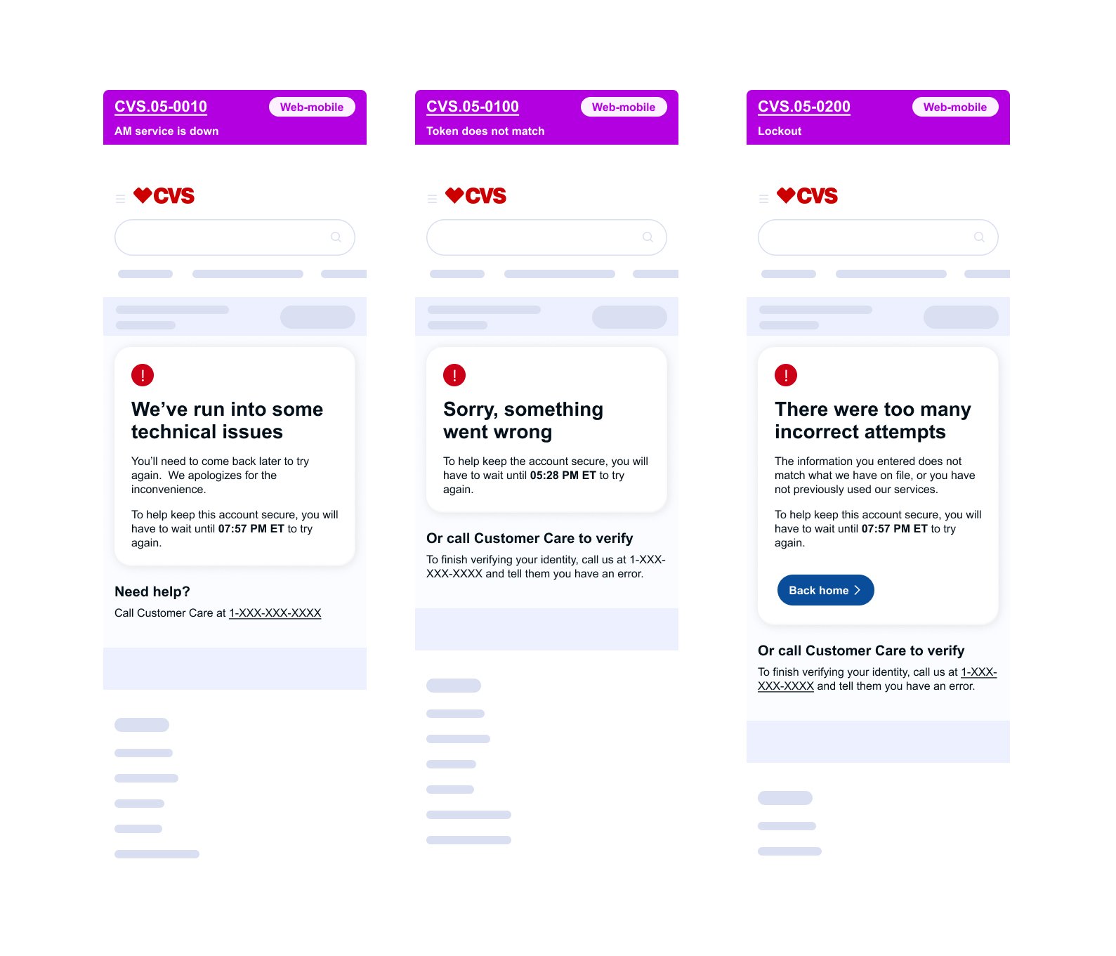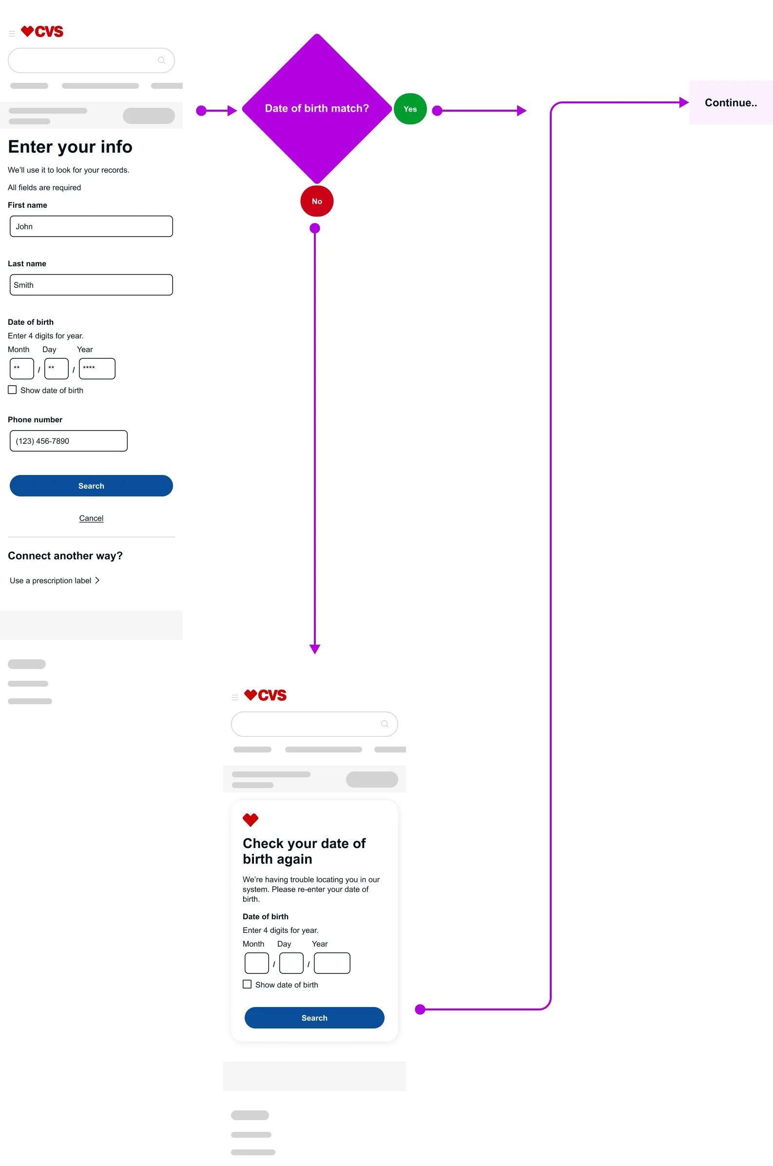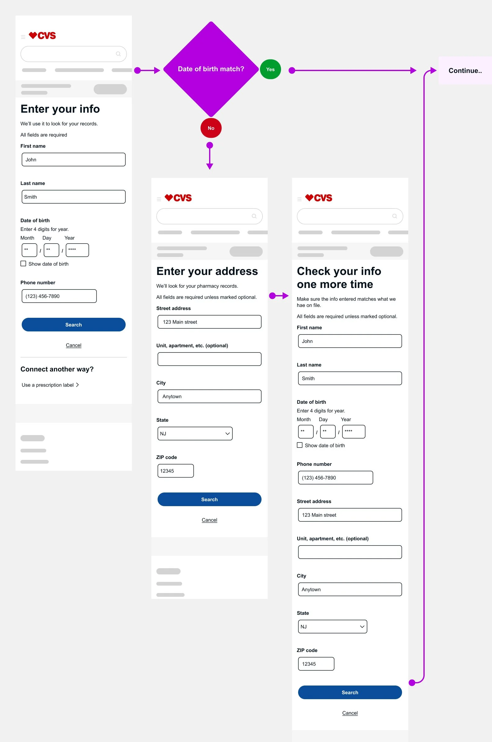 I aligned experiences across three engineering teams supporting CVS Health, Caremark, and CVS Specialty to ensure consistency across platforms. This work directly supported the One App initiative by establishing shared patterns and behaviors regardless of entry point.