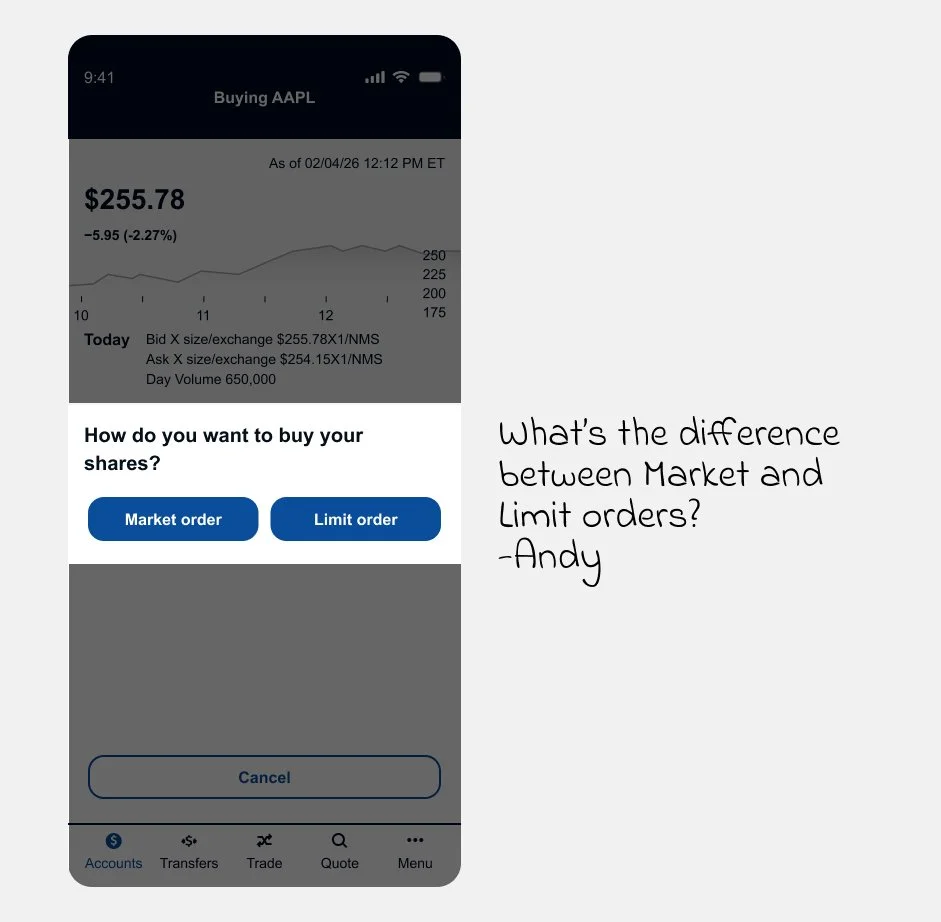 “Designing for Andy means understanding that a first trade is both exciting and intimidating. The experience should balance momentum with education—guiding action without overwhelming the user.”